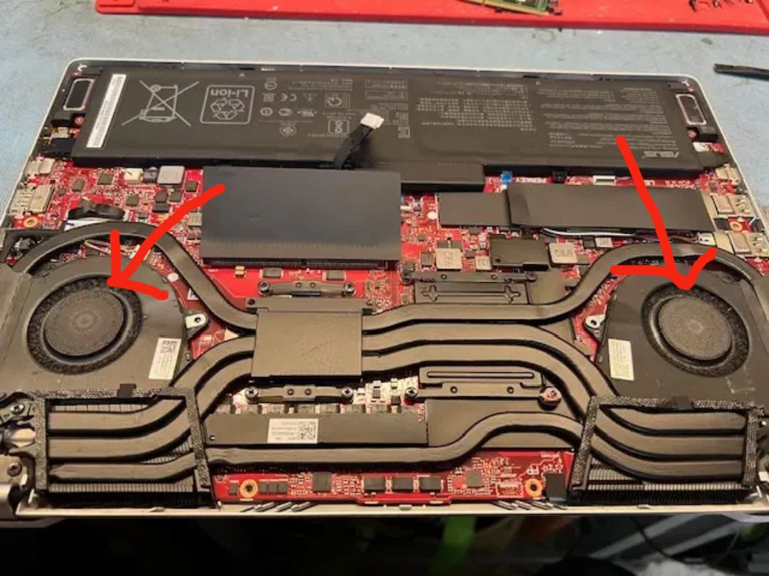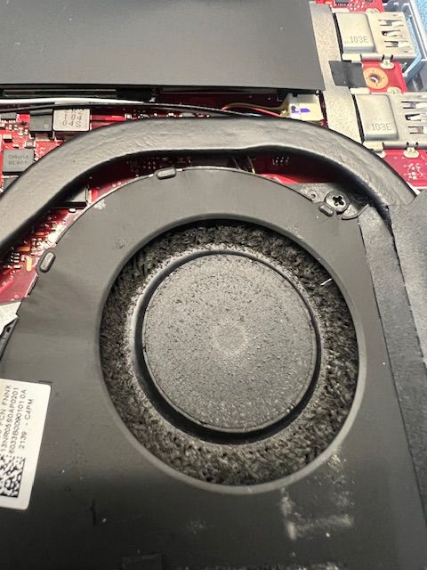 Before and after repair! Sunny came in for a noisy fan repair. See before and after pictures. Laptop works fine now. Thank you for your business. Before pic. Left fan. Before pic. Right fan. Before pic. Before pic. After pic.